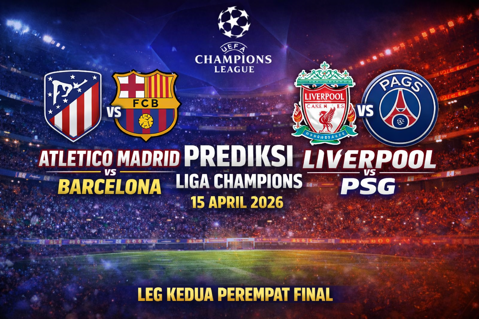 BANDAR36 –  Babak perempat final Liga Champions UEFA memasuki fase krusial. Leg kedua selalu penuh tekanan karena menentukan siapa yang melaju ke semifinal. Dua laga besar akan tersaji: derby Spanyol antara Atlético Madrid vs FC Barcelona, serta duel raksasa Eropa antara Liverpool FC melawan Paris Saint-Germain.