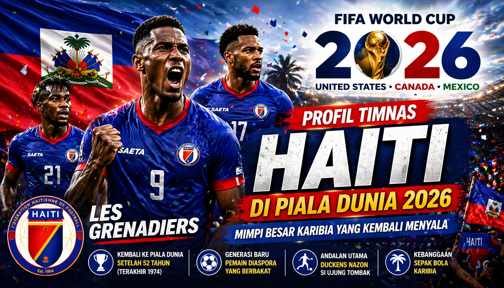 Timnas Haiti datang ke Piala Dunia 2026 dengan mimpi besar dan semangat baru. Setelah penantian panjang, mereka kini memiliki kesempatan untuk membuktikan diri di panggung dunia.
