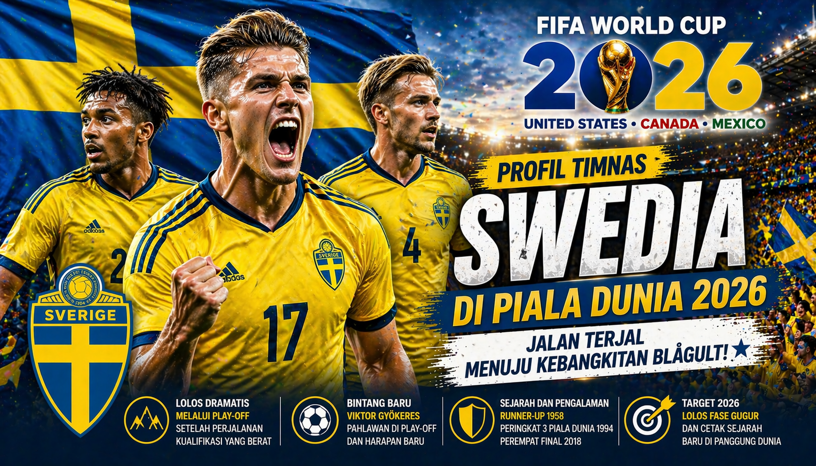 Timnas Swedia datang ke Piala Dunia 2026 dengan cerita kebangkitan yang dramatis. Dari performa buruk di kualifikasi hingga lolos secara heroik, mereka membuktikan bahwa mentalitas adalah segalanya.