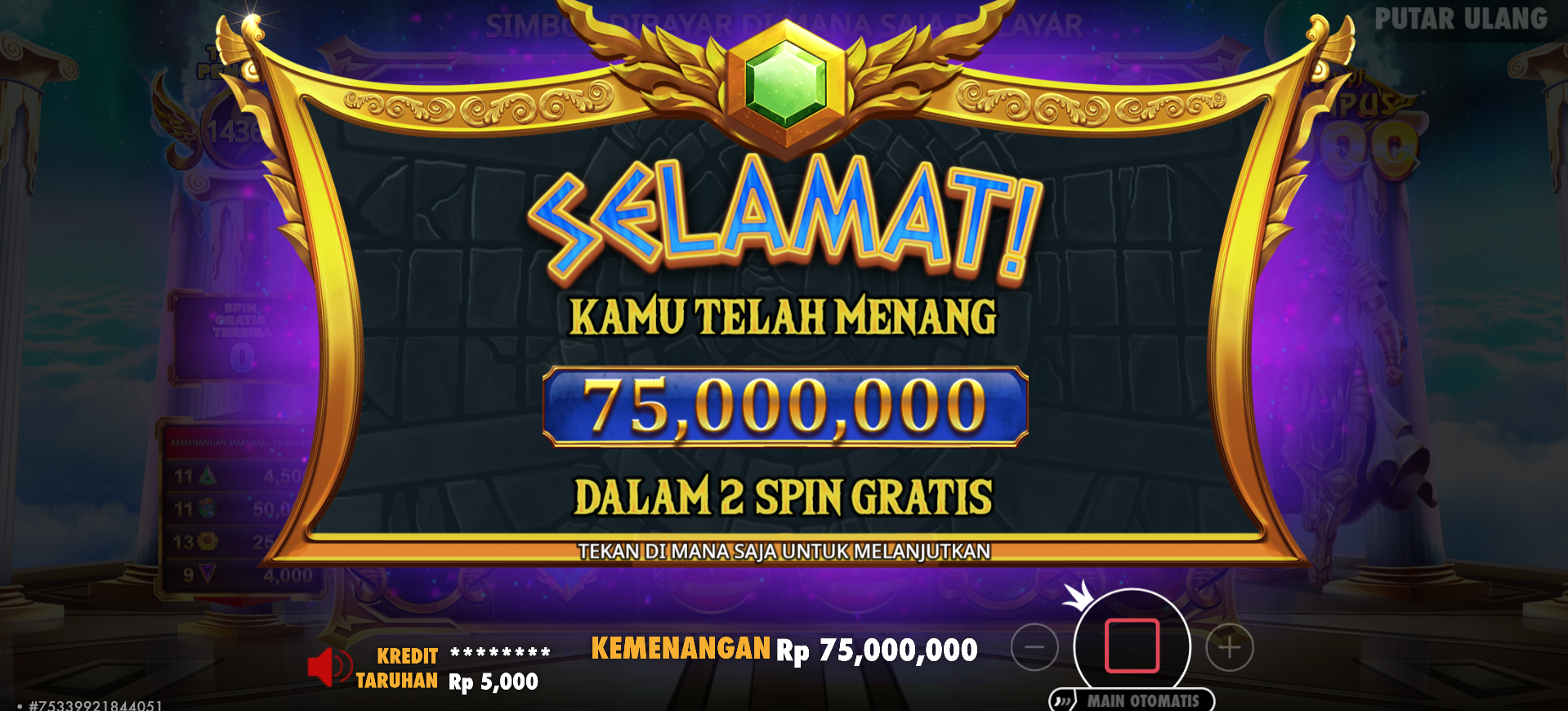 Selamat untuk ID opit***! Kemenangan Rp75.000.000 dari bet Rp500.000 di Gates of Olympus bukan cuma seru, tapi juga jadi bukti kalau rencana dan disiplin itu ngaruh besar. Buat kamu yang pengin pengalaman bermain yang mulus, responsif, dan kompetitif, gabung & bermain di KLIKHOKI. Siapkan targetmu, baca momentum, dan jangan ragu profit lock saat angka lagi bagus.
